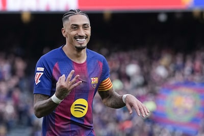 Raphinha scoort drie keer voor FC Barcelona tegen Sevilla..