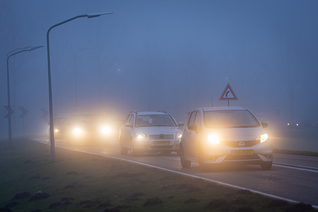 Code geel voor dichte mist in noordelijke helft van het land, hinder voor verkeer..